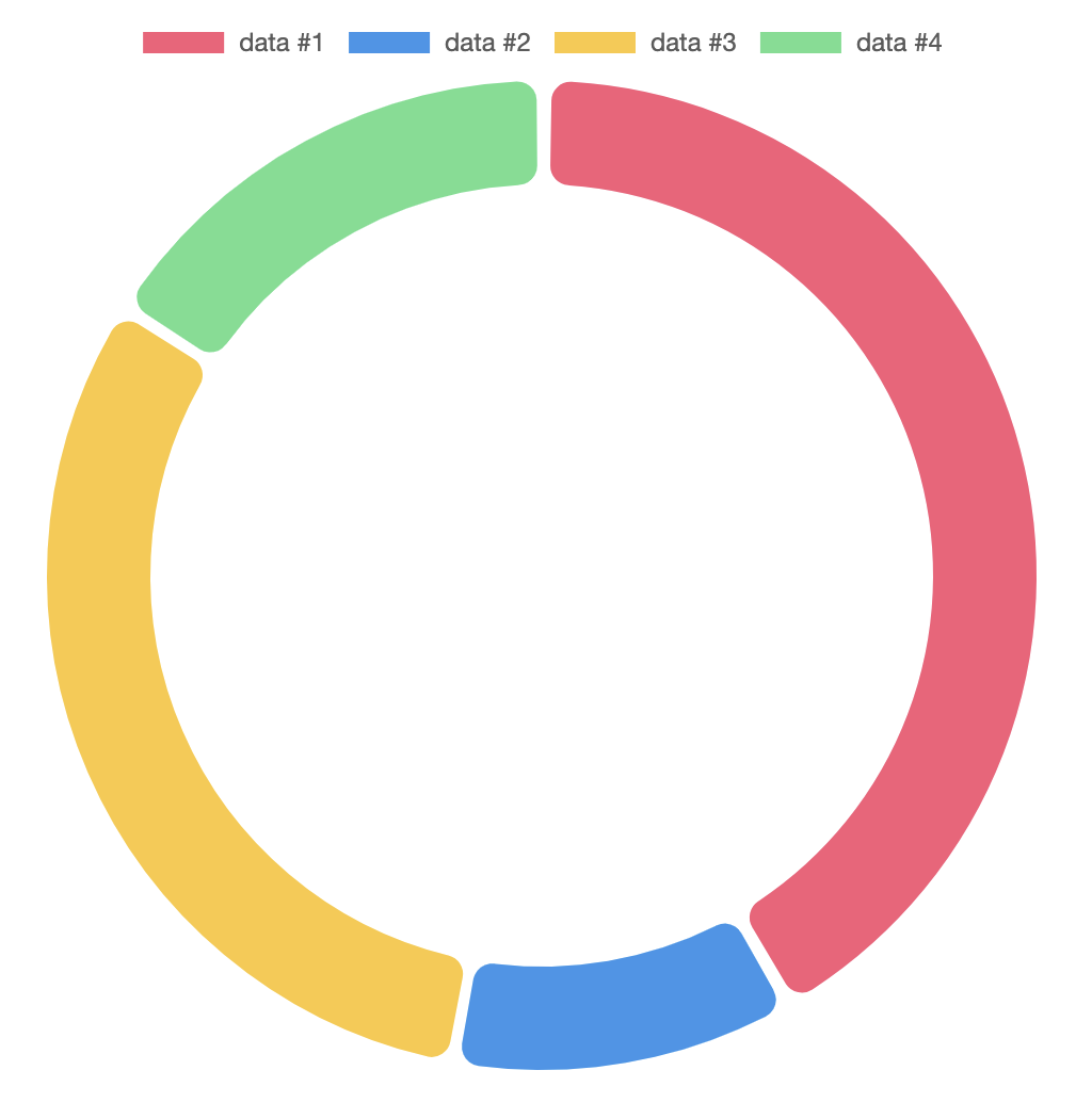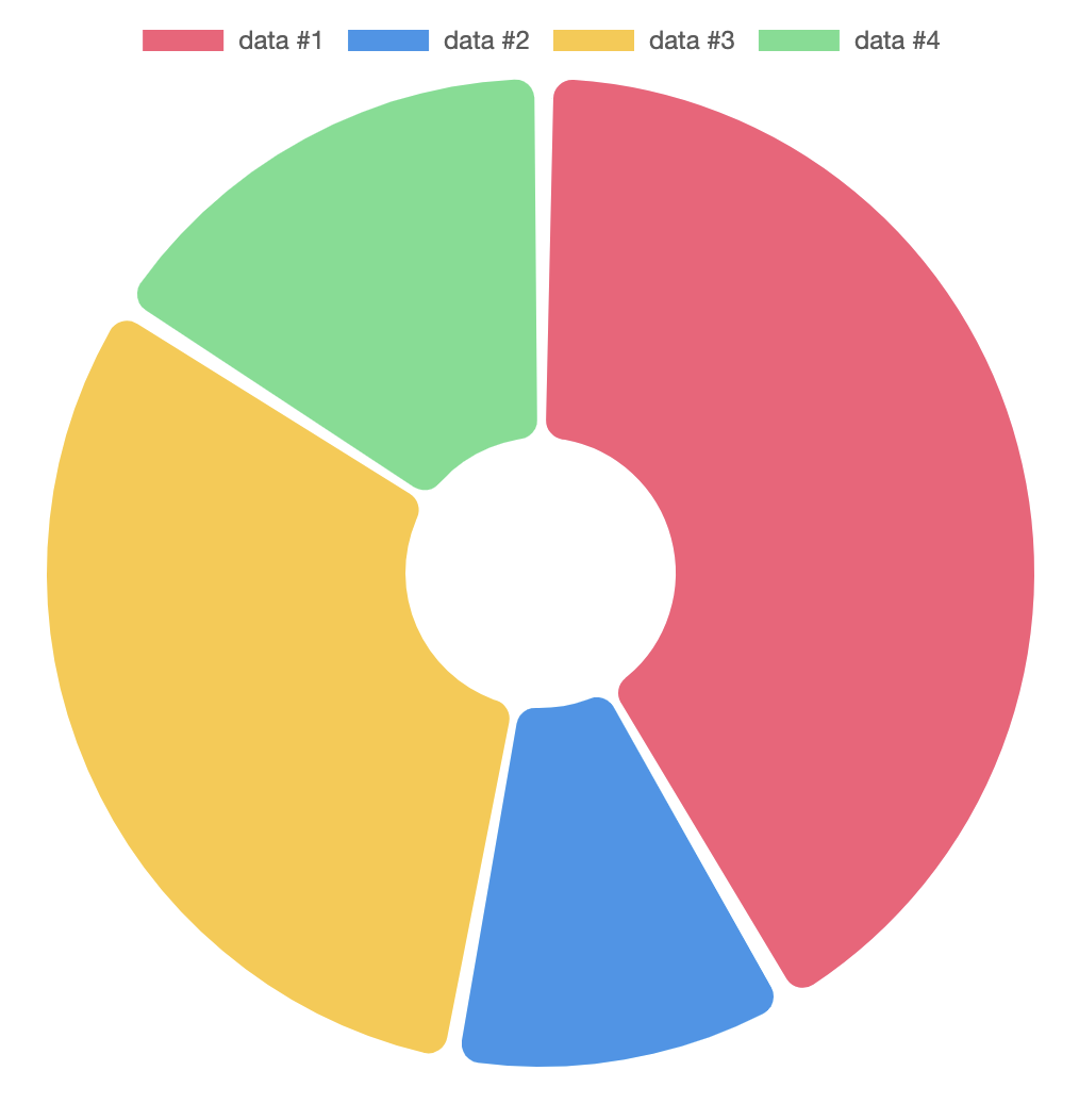Doughnut 차트를 이용하다보면 도넛의 굵기나 스타일에 따라 느낌이 많이 달라집니다. 추가한 설정으로는 borderRadius, spacing, cutout 세 종류가 있습니다.