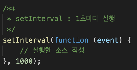 위의 코드는 setInterval 함수의 기본 문법이며, 위와 같이 매개변수를 받고 있다.