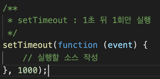 위의 예제를 보게 되면 함수를 만드는 방식은 setTimeout과 동일하고 함수명만 다르게 주면 된다.