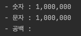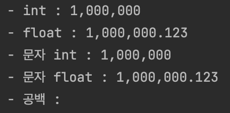 그리고 최종적으로 print를 호출하면 천 단위마다 콤마가 찍히는 것을 확인할 수 있다.