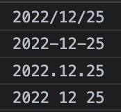 마지막으로 parseDate 함수를 통해 각각의 패턴 ('/', '-', '.', ' ')에 대한 날짜 문자열리 반환되어 log를 출력한다.