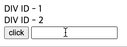 예제 소스 코드에서는 div, input button, input text 모두 getElementById 함수를 이용하여 조회 후 요소를 다루고 있다.