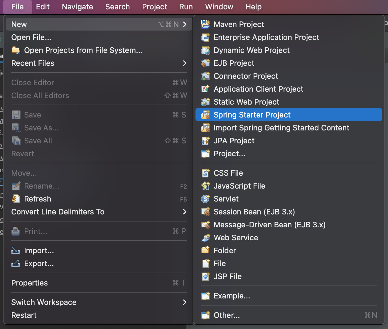 File > New > Spring Starter Project