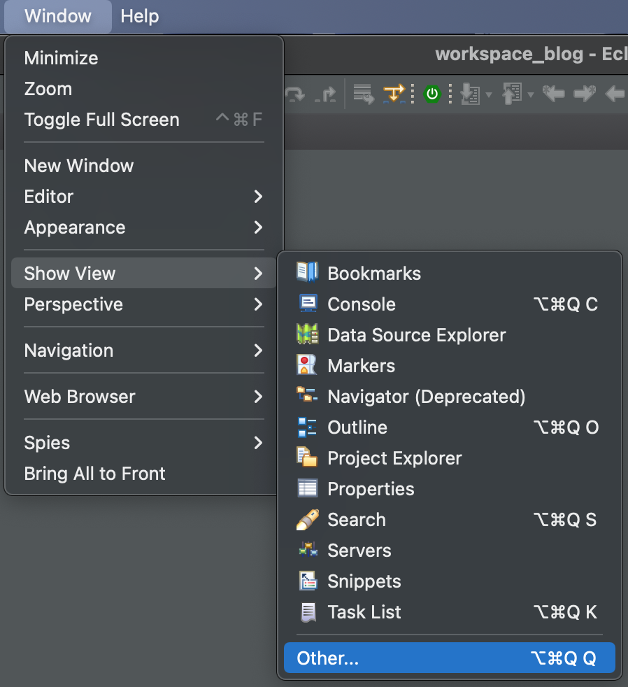 Spring tools 설치 완료 후 eclipse 재시작을 하면 Spring boot 관련한 기능들이 추가가 되어 있다.