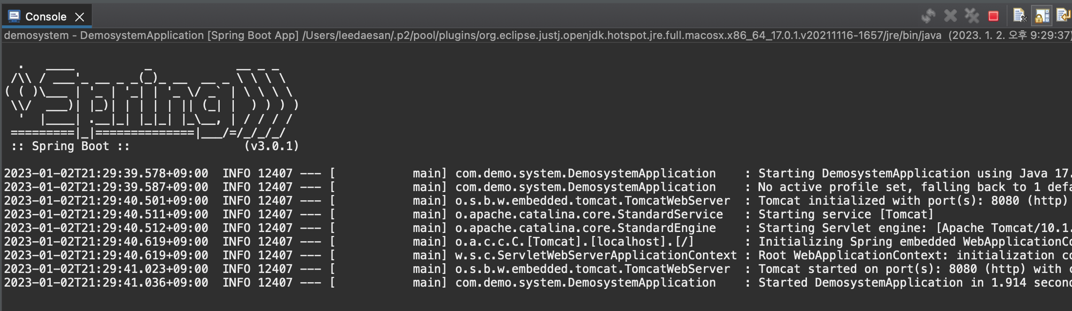 먼저 사용하는 eclipse 또는 sts를 실행한다.