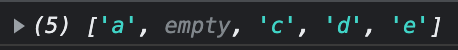 특징 : 삭제 대상 요소를 삭제하고 삭제된 요소는 undefined로 변경됨, 인덱스 위치에는 undefined로 값이 유지됨