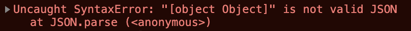 에러 내용은 "[object Object]" is not valid JSON 입니다.