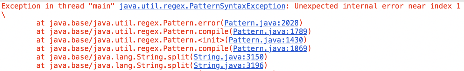 일반적으로 split("\\")을 수행했을 때에는 동일한 에러가 발생을 한다.
