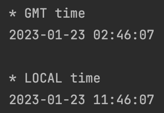 위와 같이 gmt와 local기준으로 9시간 차이로 시간 설정이 된 모습입니다. localtime()은 현재 대한민국 표준시로 하여 나오게 되고, gmtime()은 -9시간을 한 시간이 나오게 됐습니다.