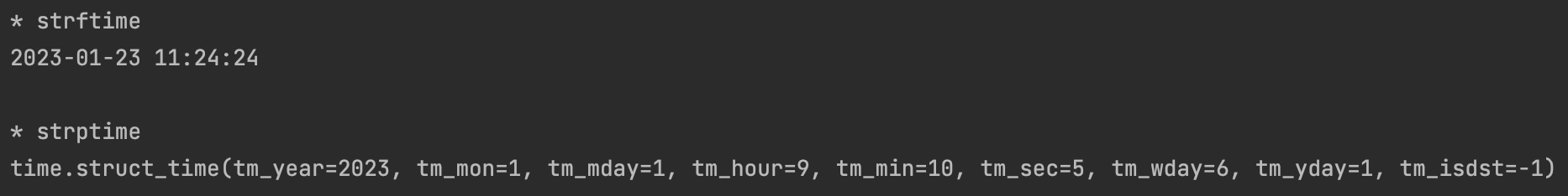 print('* strptime')